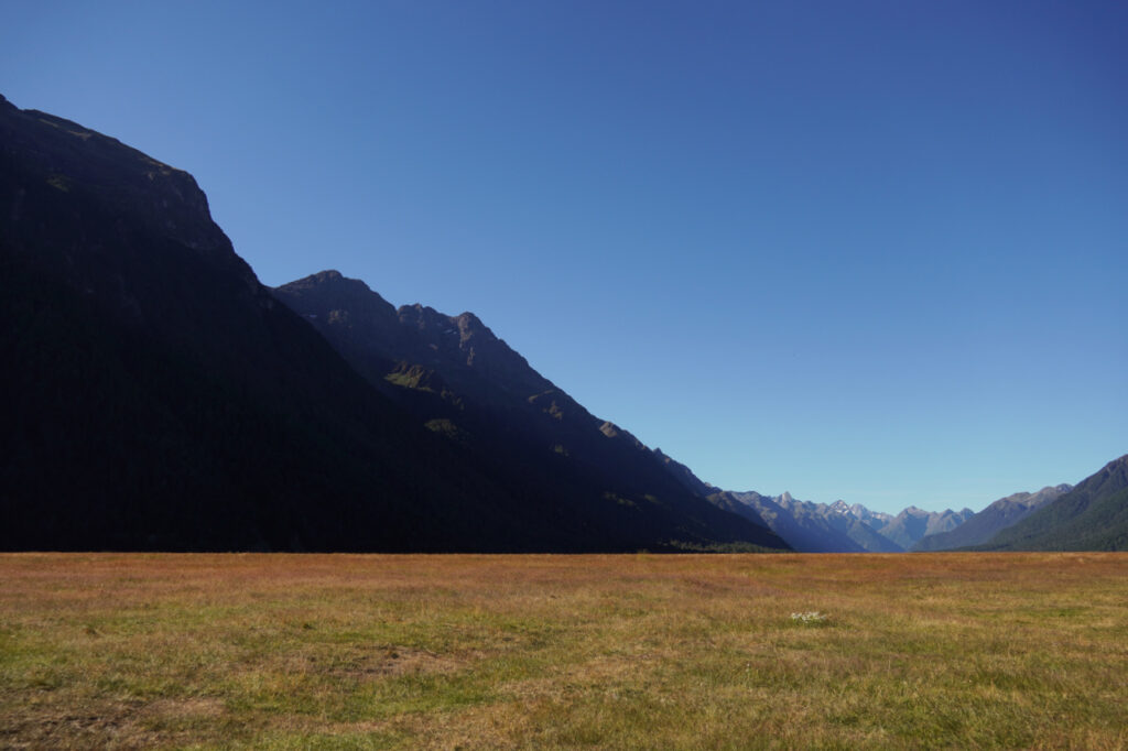 Unterwegs halten wir an den Eglinton Valley. So wie es hier aussieht, muss Gandalf auf Schattenfell schon mal hier vorbeigeritten sein. Ein weiterer Zwischenstopp an den Mirror Lakes ist wenig erfolgreich, da es einfach zu windig für spiegelglattes Wasser ist. Finaler Halt für heute ist der Campingplatz Cascade Creek. Damit haben wir schon den größeren Teil zwischen Te Anau und dem Milford Sound geschafft.