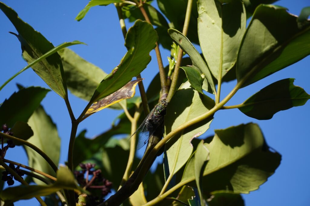 Später spielen die Zikaden ihr Lied. Teilweise sind sie so laut, dass ich überlege mein Ohropax rauszukramen. Lulu hält sich zwischendurch die Ohren zu. Wir kommen heute auch durch einige Stücke des ursprünglichen Waldes. Es ist wirklich dunkel hier, sodass ich die Sonnenbrille abnehme, um besser zu sehen. Ebenfalls ein netter Effekt: Die Zikaden scheinen keinen Gefallen am nativen Gehölz zu finden, sodass sich die Ohren hier ein wenig erholen können.