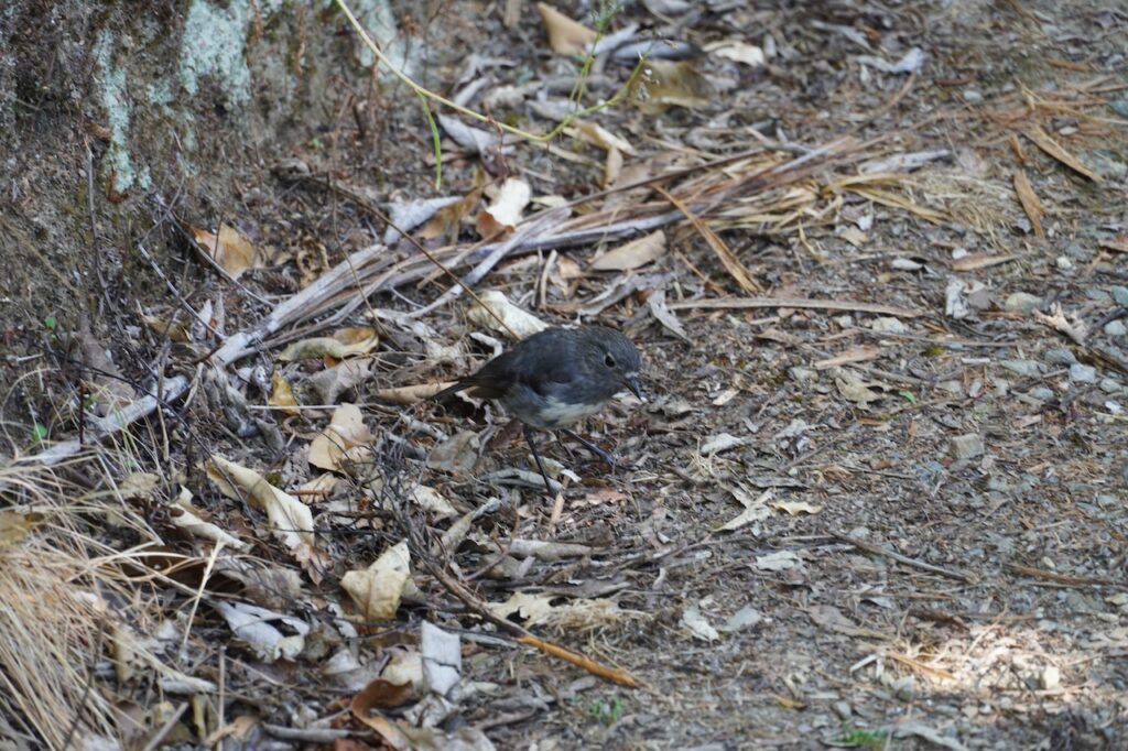 Wir brechen auf. Vor uns liegt eine nur sechs Kilometer lange Etappe bis Schoolhouse Bay. Etwa die Hälfte des Weges gehen wir bergauf und die andere Hälfte wieder bergab. Gegen 13:30 Uhr erreichen wir das Ziel. Es gibt keine Hütte, nur ein paar Bänke und ein Plumpsklo mit Sicht auf die Bucht, falls man die Tür offen lässt. Wenn man den Weg 100 Meter zurückgeht kommt man an den Strand. Es streunen zwei Wekas über das Gelände und spielen Hausmeister.