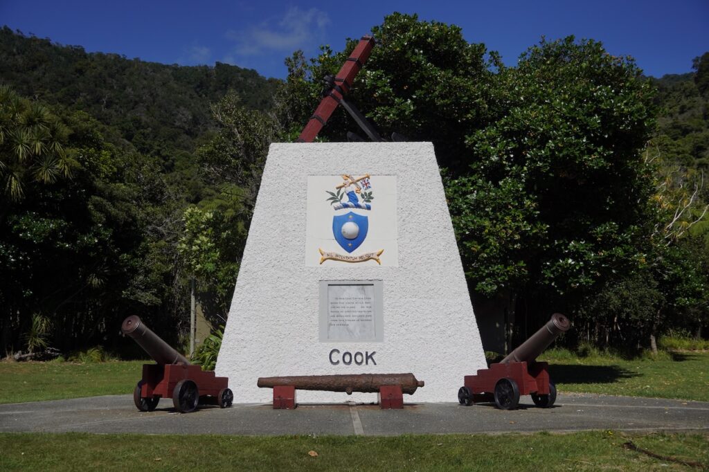 Als wir wieder unten ankommen, legt das nächste Boot schon an. Nach einer kurzen Überfahrt erreichen wir Ships Cove, wo wir uns erstmal einen Moment lang umsehen. Hier steht ein großer Gedenkstein zu Ehren von Captain James Cook bzw. bei seiner ersten Landung noch Lieutenant James Cook. Er landete hier mehrfach während seiner Expeditionen an und knüpfte hier, in dieser kleinen Bucht, den ersten Kontakt zwischen Māori und Europäern. Ich blicke mich ein wenig um und versuche mir vorzustellen wie es wäre, wenn ich hier nicht nach einer Stunde Wassertaxi aus der nächstgelegenen Stadt mit Supermärkten und allem Schnickschnack ankäme, sondern nach Monaten auf hoher See, ohne zu wissen was auf dem Land vor mir liegt. Es gibt mehrere Süßwasserströme, das Land bietet Schutz vor den Roaring Forties und es streunen Wekas, die wir schon vom Kepler Track kennen, und Oystercatcher über das Gelände, sodass man mal was anderes als Fisch essen könnte. Zudem gibt es im Wald genug Material, um das Schiff ausbessern zu können.