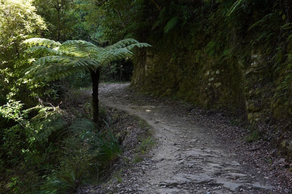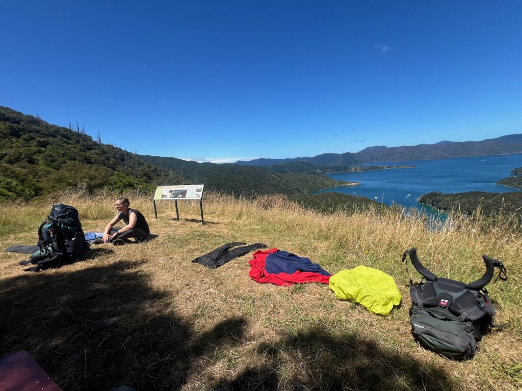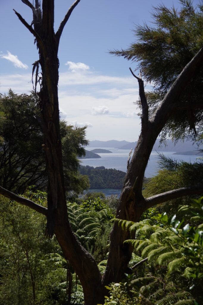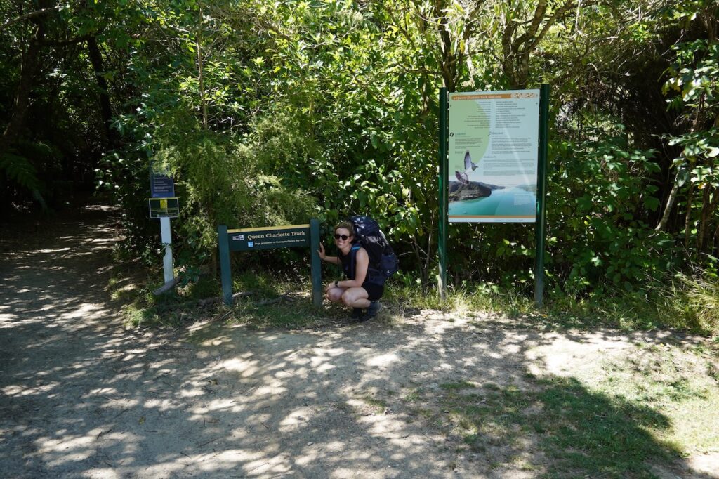 Wir haben nur wenige Höhenmeter vor uns und mit 12,5 Kilometern ist die Etappe auch nicht übermäßig lang. Allerdings müssen wir spätestens um 15:30 Uhr in Anakiwa sein, da dann unser Wassertaxi zurück nach Picton fährt. Ein bisschen sitzt uns die Zeit also im Nacken, zu sehr trödeln sollten wir nicht. Zudem müssen wir erstmal wieder auf den Track kommen, was etwa einen Kilometer zusätzliche Strecke bedeutet, die, zu allem Überfluss, bergauf führt.