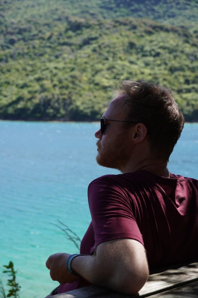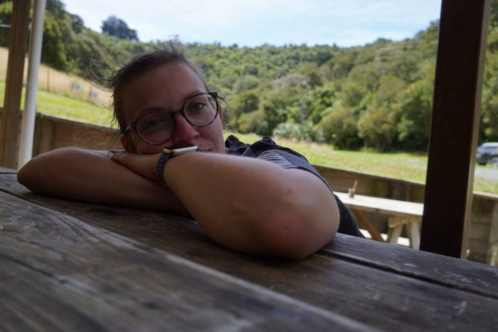 Als wir einen Platz gefunden haben, der vorläufig weniger interessant für die Wekas zu sein scheint, stellen wir dort unser Zelt auf und halten ein Nickerchen. Als wir hinterher am Strand sitzen, kommen vier Amerikaner asiatischer Abstammung angewankt und setzen sich auf ein paar Steine. „Zusammen sind wir 320 Jahre alt“, erzählt die eine Dame stolz. Sie haben für den Weg, der mit zwei Stunden ausgewiesen ist, vier Stunden gebraucht und somit ihr Boot zurück verpasst. Sie wohnen in Los Angeles und San Francisco, wenn sie nicht Neuseeland bereisen. Wir bieten ihnen etwas von unserem Wasser an. Sie zögern. Als wir erklären, dass wir hier zelten und sowieso heute Abend noch Wasser abkochen oder filtern müssen, erklären sie uns zuerst für mutig und füllen dann doch ihre kleinen Fläschchen auf. Zwei von ihnen eilen voraus, und suchen die nächste Anlegestelle. Wir können die Anlegestelle mit den anderen beiden hier vom Strand aus sehen, man muss nur etwas in Richtung Wasser gehen. Wir erzählen ein wenig. Uns wird erklärt, dass alle Deutschen gute Wanderer sind. Die Frau trinkt eigentlich kein Bier, nur wenn sie deutsches Bier bekommen kann, dann schlägt sie gern mal zu. Als ich erkläre, dass sie nicht das billigste Bier aus deutschen Supermärkten kaufen sollten, staunen sie. Die anderen beiden kommen erfolglos zurück. Wir hören nochmals wie mutig wir sind, hier zu zelten. Lulu und ich gucken uns fragend an. Was wissen die vier, wovon wir nichts wissen? Wir scherzen, dass sie zur Not mit uns im Zelt schlafen könnten. „Das wird dann aber kuschelig“, lacht die eine. Zu sechst gucken wir auf meine Offline-Karten-App: Dort und vom Strand aus kann man den Anleger sehen. Am Strand steht ein Schild „Shop 800m“. Da muss es wohl sein. Sie telefonieren mit ihrem Hotel, ob die ein Ersatzboot organisieren können. Es herrscht ein heilloses Stimmengewirr und ich bin wirklich froh, nicht auf der anderen Seite des Telefonhörers zu sein. Irgendwann haben sie die Formalitäten geklärt und wollen aufbrechen. Ich drücke jedem von ihnen noch einen Schokokeks in die Hand, damit sie die Strecke auch wirklich schaffen. Sie fragen noch nach unseren Namen. „Stefan und Luisa, I will never forget you. If you hear me scream your names, we missed our boat again.“ Dann sind sie weg, bleiben weg und sind auch nicht mehr zu hören. Etwas später sehen wir ein Wassertaxi am Steg anlegen und Bewegung auf dem Steg. Sie scheinen es wirklich geschafft zu haben.