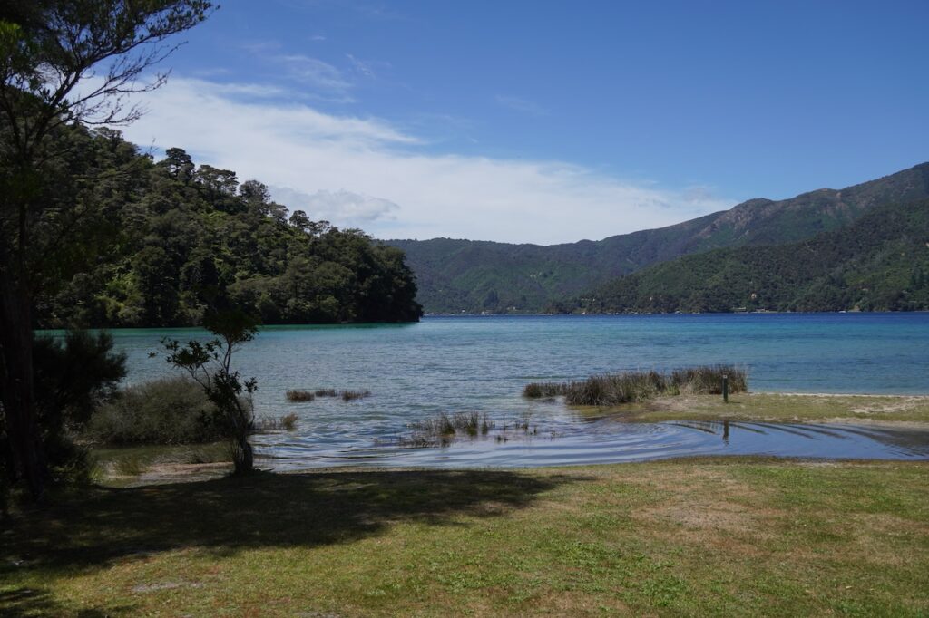 Die Black Rock Campsite ist heute unser Ziel. Es gibt ein Plumpsklo und eine kleine Kochhütte. Beides ist allerdings nicht so gut gepflegt wie wir es bisher kennen. Dafür gibt es eine hervorragende Aussicht über die Sounds und auf Picton.