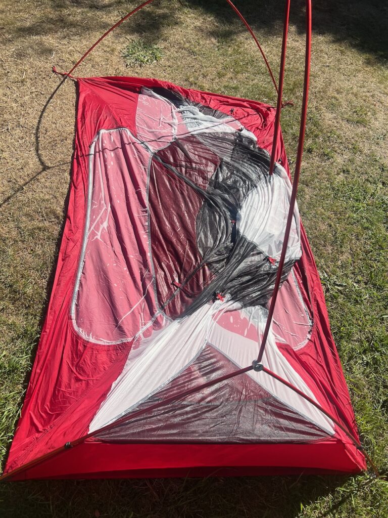 Wir suchen uns den sonnigsten Platz aus und trocknen das Zelt und alles was sonst noch etwas Sonne braucht. Wind ist auch noch genug da, der dem Trocknungsprozess bestimmt auch zuträglich ist. Hoffentlich wird’s nicht zu doll über Nacht.